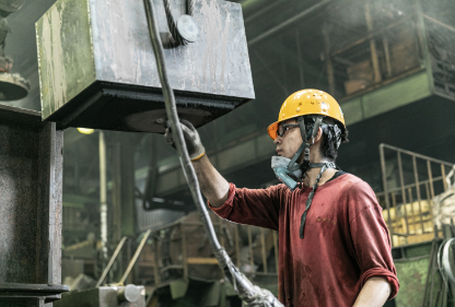 型に鉄を流し込んで部品を作る作業や、クレーンの操作方法を勉強中です。ミスをした時に「次は気をつけよう」と前を向けるのは優しい指導があるからこそ。製作途中の部品を壊してしまっても、先輩は怒ることなく再度丁寧に教えてくれました。右も左も分からない状態から仕事を教えてくれる先輩方には感謝してもしきれません。